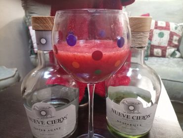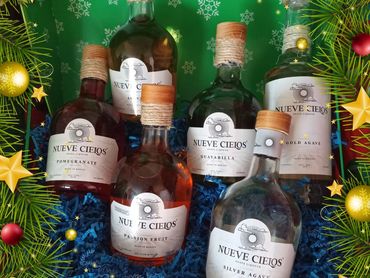 2 parts Nueve Cielos Pomegranate Liquer and 1 part Nueve Cielos Gold Agave (chill on ice)